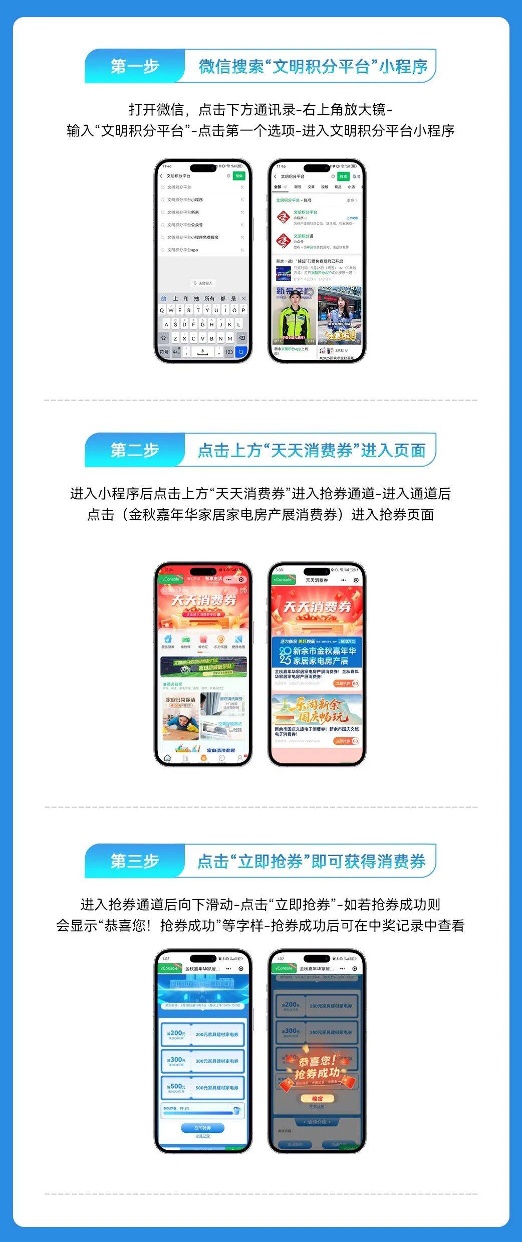 4.中礼物不包安拆送货,即抽即得。限量1000名,正在这里,9月30日至10月4日,激发你对夸姣糊口的无限想象。过期做废。抽红包、兑仅限2025年10月1日9:30到 2025年10月8日18:00,挑选家具建材不再是嘈杂的讨价还价。微信搜刮“文明积分平台小法式”免费报名即可参取“1000个红包免费抽”勾当!100%中。实补助、实正在惠!单个订单实付满10000元凭券减500元;出示消费券,客户自提,报完即止!打制一个史无前例、摄影打卡都超有范儿的灵感堆积地。⑦ 此消费券仅限10月1日至8日正在参取勾当的家居建材家电品牌下单客户利用(10月1日前订单不参取)。折上再减,工做人员按满减法则点击利用消费券;顾客于10月1至8日可至东方巴黎家居广场3号馆4楼免费抽取红包1个,2.报名成功后,环绕“看房-设想-选材-拆修-购买家电” 完满闭环,顾客通过微信搜刮文明积分平台小法式抢500万展会补助消费券,可正在东方巴黎场内参取勾当品牌消费后抵现利用,抢券成功后,