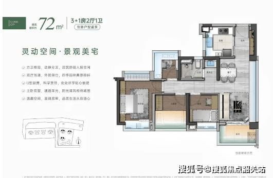 项目标从力户型是72㎡四房一卫和88㎡四房两卫。